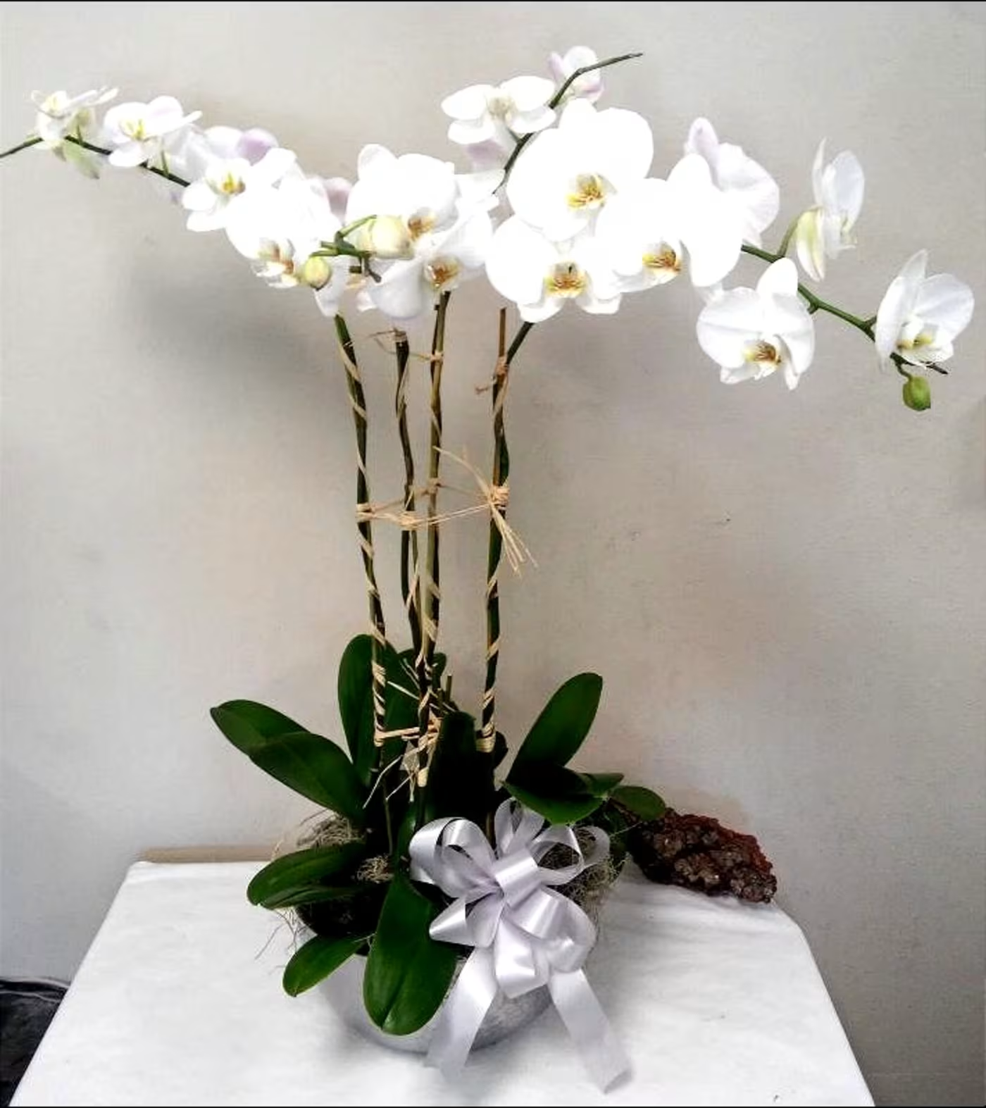 A grouping of Phalaenopsis Orchid plants, 4 are shown as Premium, 3 are in Deluxe and Regular has 2 plants. Phalaenopsis orchids also come in lavender shades please specify in comments if you desire another than white, colors and container may vary with availability.